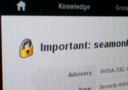 A flaw in RPM, CVE-2011-3378 fixed by RHSA-2011:1349 where a specially-crafted RPM package that, when queried or installed, would cause rpm to crash or, potentially, execute arbitrary code prior to any signature checking. We're not aware of any working exploits for this issue.