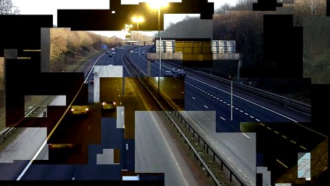 We used our scripts to create a number of ~13 second segments, then put them all together using kdenlive. The intro and outro were taken from a different video from a hotel room in London Victoria; the intro using a 'miniature' effect, and outro using the randomised segments applied to a single video.