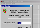 Conn4 was a simple connect-4 like game designed to demonstate multiplayer gaming for Winsock (Windows 3.1 TCP/IP API) written with Paul Sutton in 1993. We even had reports of it working inside WABI, and when I visited Microsoft people there remembered it