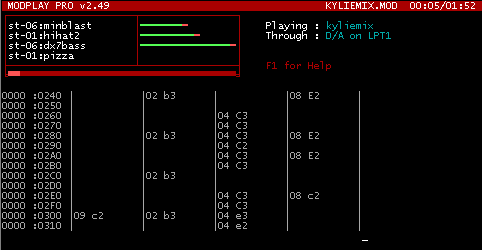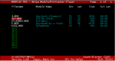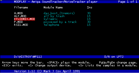 The first coding on Modplay started on the 17th February 1991 and in April 1991 the first public version, 1.12, was released. Version 1.12 was pretty basic and didn't have an extensive user interface, but it did manage to do a good job of playing most mod files through a PC speaker or hardware attached to a parallel port.