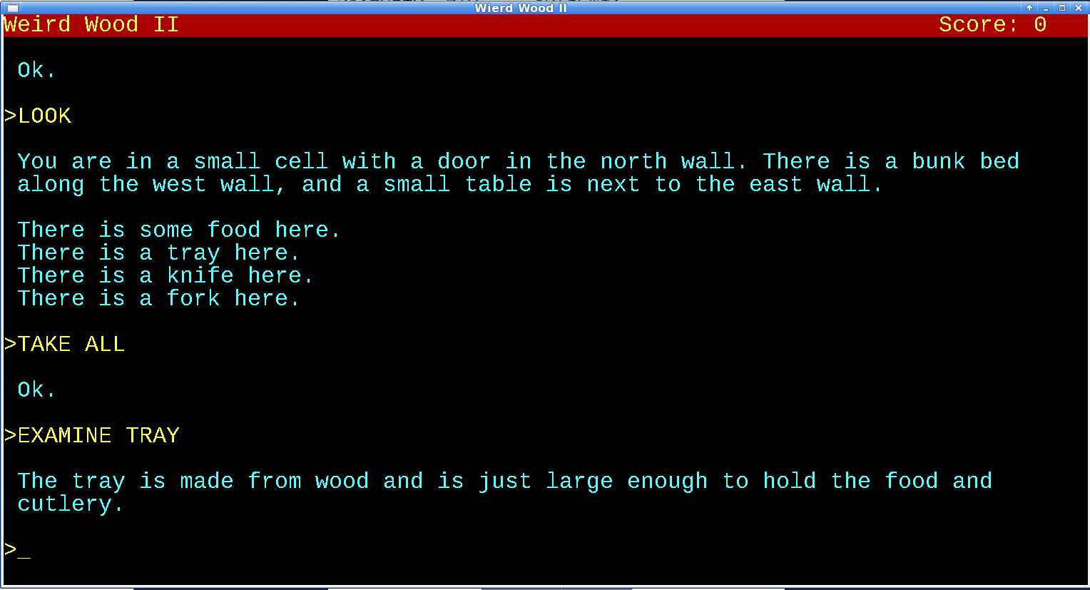 That's where I met Rob Watts. Rob wrote the puzzles for the society magazine and showed me his adventure game "Weird Wood II" with it's devious and complex puzzles. As a fan of text adventures I really wanted to continue playing the game after the meeting ended that night. So at a later meet Rob made me a print out of the BASIC source code from a line printer, many many pages long, and I proceeded to convert it to run on my Sharp MZ-80K. A few years later I converted it again to GWBASIC to run on my Amstrad PC1512. I made a few changes, adding a help system and more graphics and fixed a couple of bugs, but never released it. I do remember spending a very long time typing everything in by hand from the printouts!
